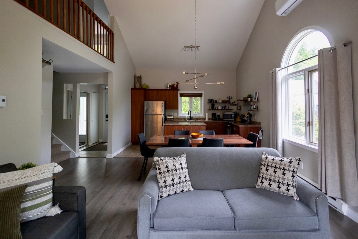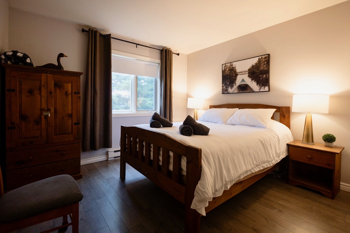 Magnifique condo chaleureux à Magog, idéal pour les amoureux de la nature avec le Parc National du Mont Orford à proximité. Trois chambres pour jusqu’à 9 personnes, 2 SDB, toit cathédrale avec mezzanine, TV câble de base et WiFi. À moins de 5 minutes de marche de la plage Memphrémagog et du centre-ville. Galerie, cuisine bien équipée et des commodités à proximité : pistes cyclables, pistes de ski et vignobles.