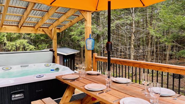 Completely renovated chalet for up to 6 people, bordered by a large forest. Its unique Scandinavian farmhouse style will provide you with a warm setting in the heart of one of Quebec’s most beautiful regions. Enjoy a covered spa overlooking nature and a large, landscaped forest. 5 minutes from Mont Orfod.