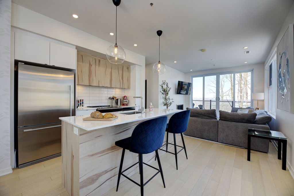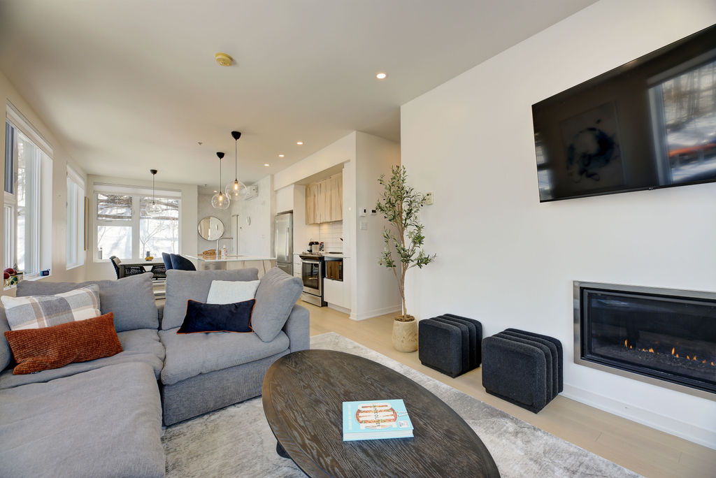 Autant les amateurs de vélo de montagne, de ski ou de randonnée apprécieront l’accès simple et rapide directement à la montagne à partir de ce logement. Avec une grande fenestration offrant une vue magnifique sur les sommets au loin et les couchers de soleil. Un parfait équilibre entre nature et confort. Après une journée à jouer dehors, tout le confort de ce condo sera apprécié par ses visiteurs.