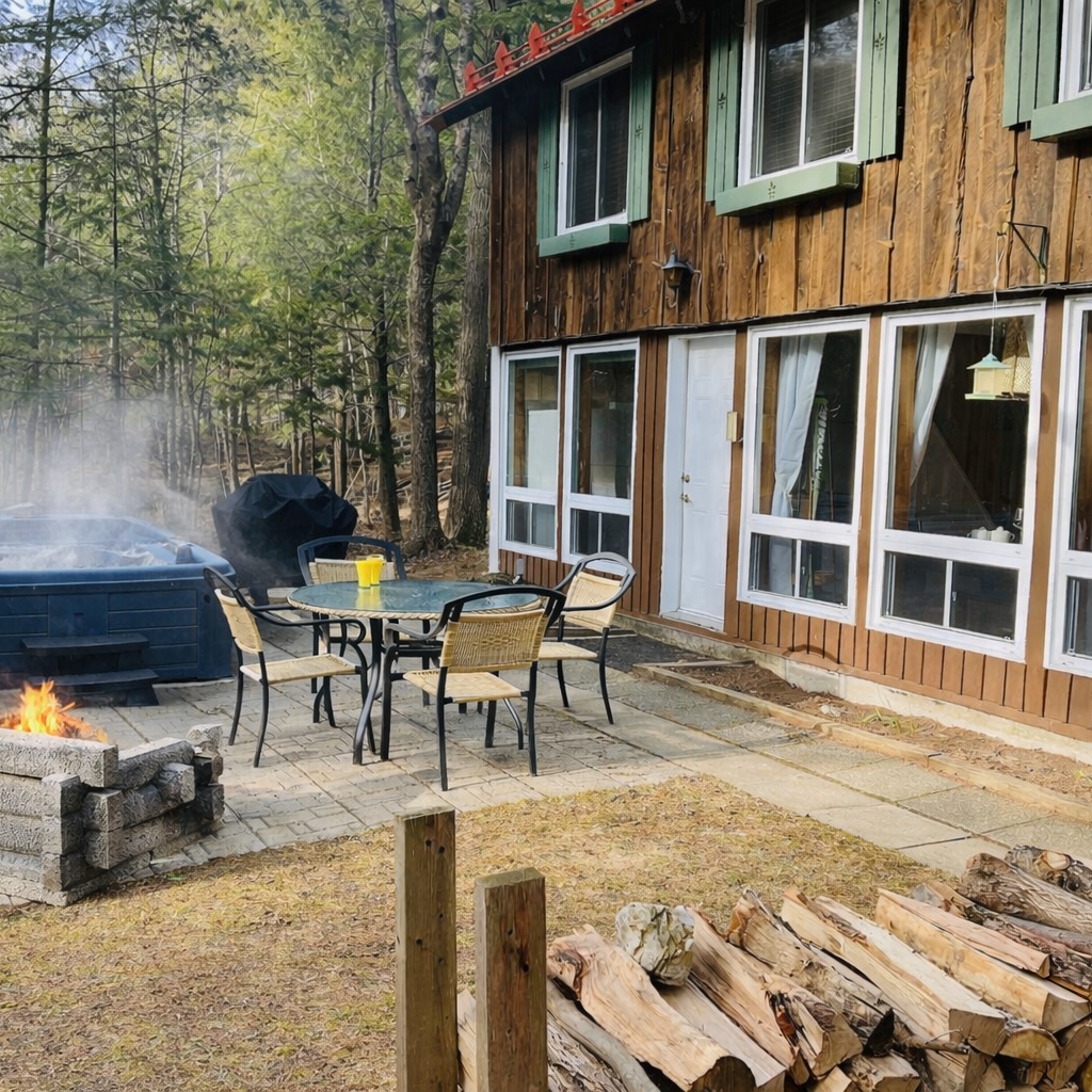 Chalet Le Montagnard à 5 min du Parc National du Mont-Orford. 2 chambres avec lit queen et lit double, divan-lit pour 2 enfants ou 1 adulte au salon. Caractéristiques : spa privé, plancher chauffant, poêle à bois, TV intelligente, système de sons, barbecue, internet Wi-Fi, 2 stationnements, remise, terrasse extérieure. À proximité : ski, vélo,…
